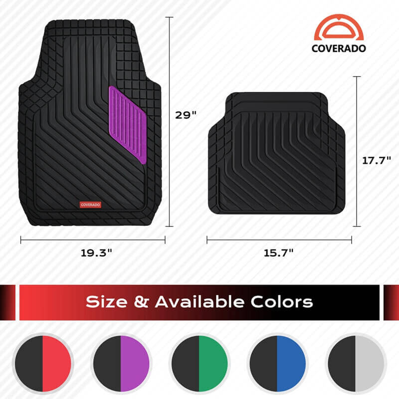 Complete Set & Dimensions: Includes 4 mats: front mats 29" x 19.3", rear mats 17.7" x 15.7". Both front and rear mats can be slightly trimmed to achieve the ideal fit for your vehicle.