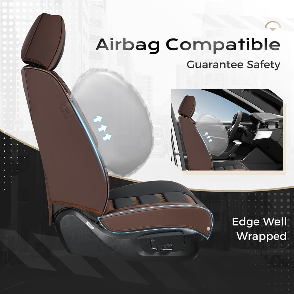 A: Our seat covers come with airbag cutouts and have been tested to not interfere with airbags. The leather seat covers are quality and thick, and they may sightly influence the heated/cooled functions. But you just need to wait a while to let the car seats get cooling or heated.