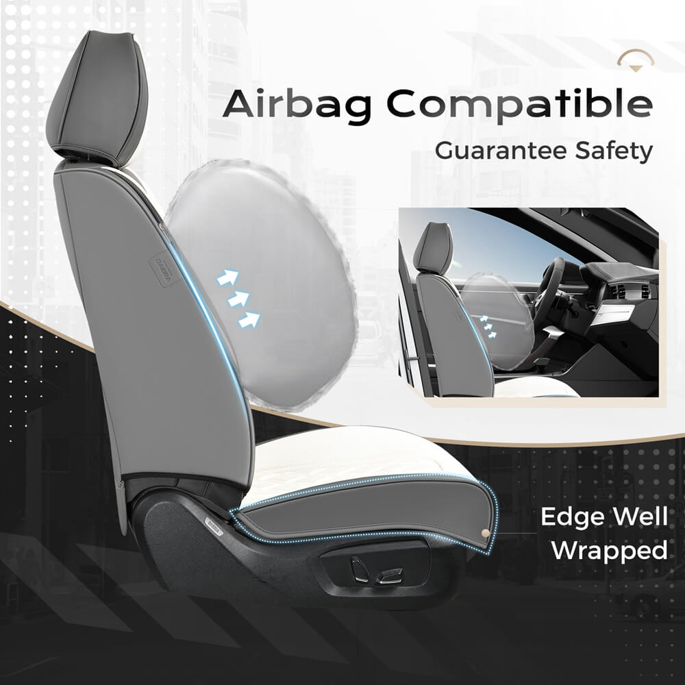 A: Our seat covers come with airbag cutouts and have been tested to not interfere with airbags. The leather seat covers are quality and thick, and they may sightly influence the heated/cooled functions. But you just need to wait a while to let the car seats get cooling or heated.