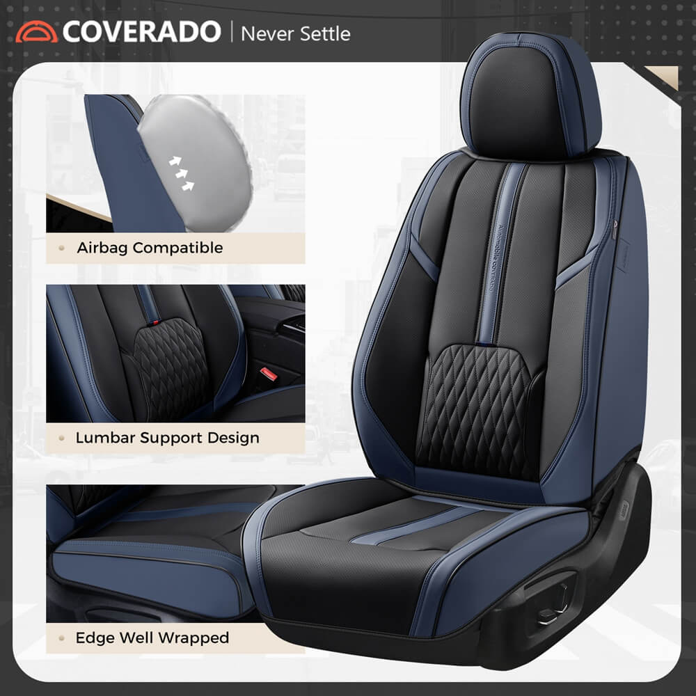 A: Our seat covers come with airbag cutouts and have been tested to not interfere with airbags. The leather seat covers are quality and thick, and they may sightly influence the heated/cooled functions. But you just need to wait a while to let the car seats get cooling or heated.